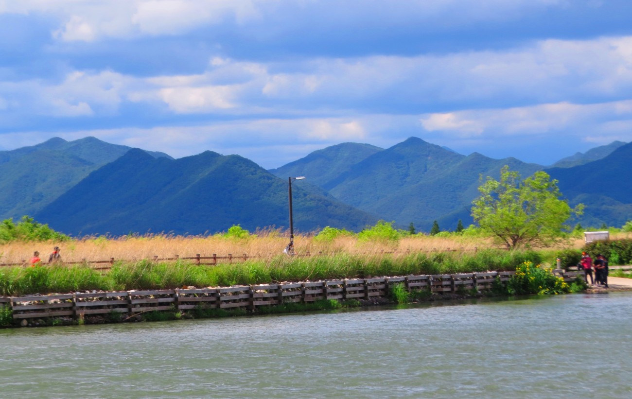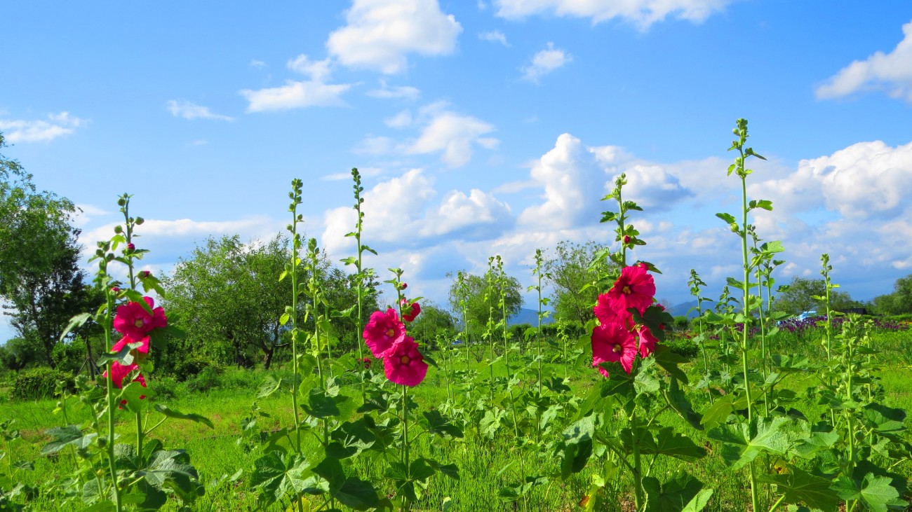 파아란 하늘 하이야 구름 강물과 꽃들이 잘 어우러진 풍경입니다...
