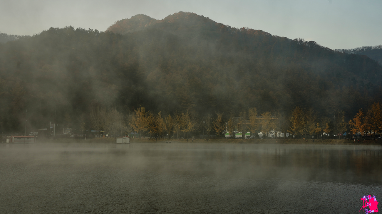 물안개 피는 문광저수지 은행나무 길! > 포토에세이