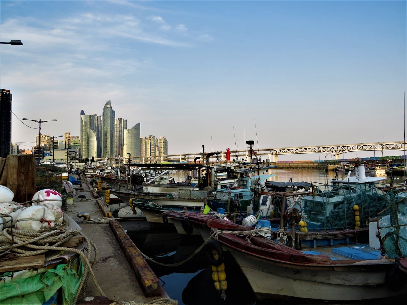 이죠. 민락포구에 정박해 있는 어선을 바라보며 망중한