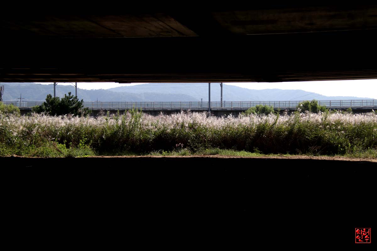 교각아래 물억새군락지에 생각보다 빠르게 물억새가 핀 것을 보았다.