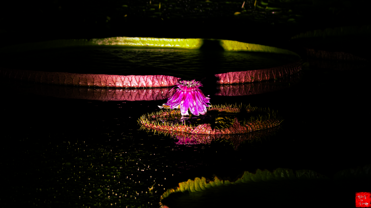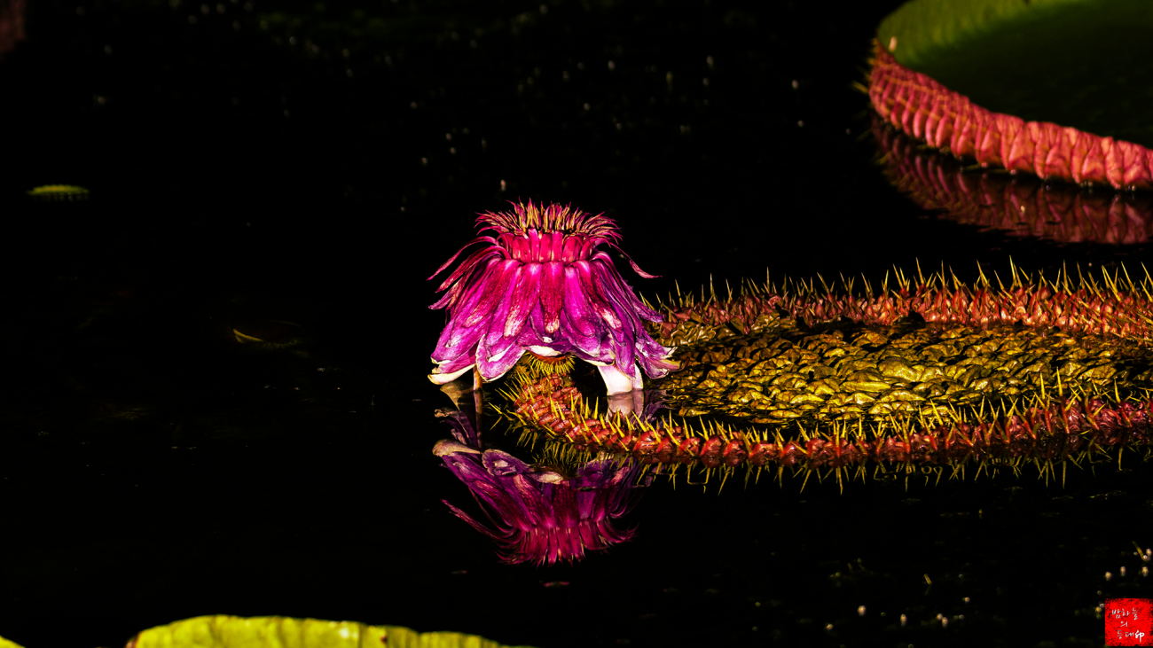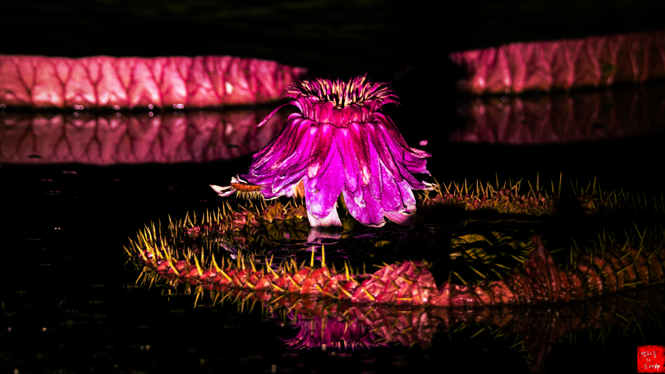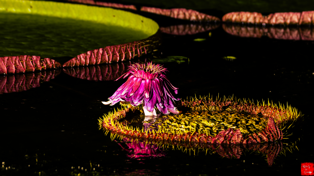 빅토리아 연꽃은 물의 수온이 내려갈 때 더욱 활짝 개화하는 모습이라
