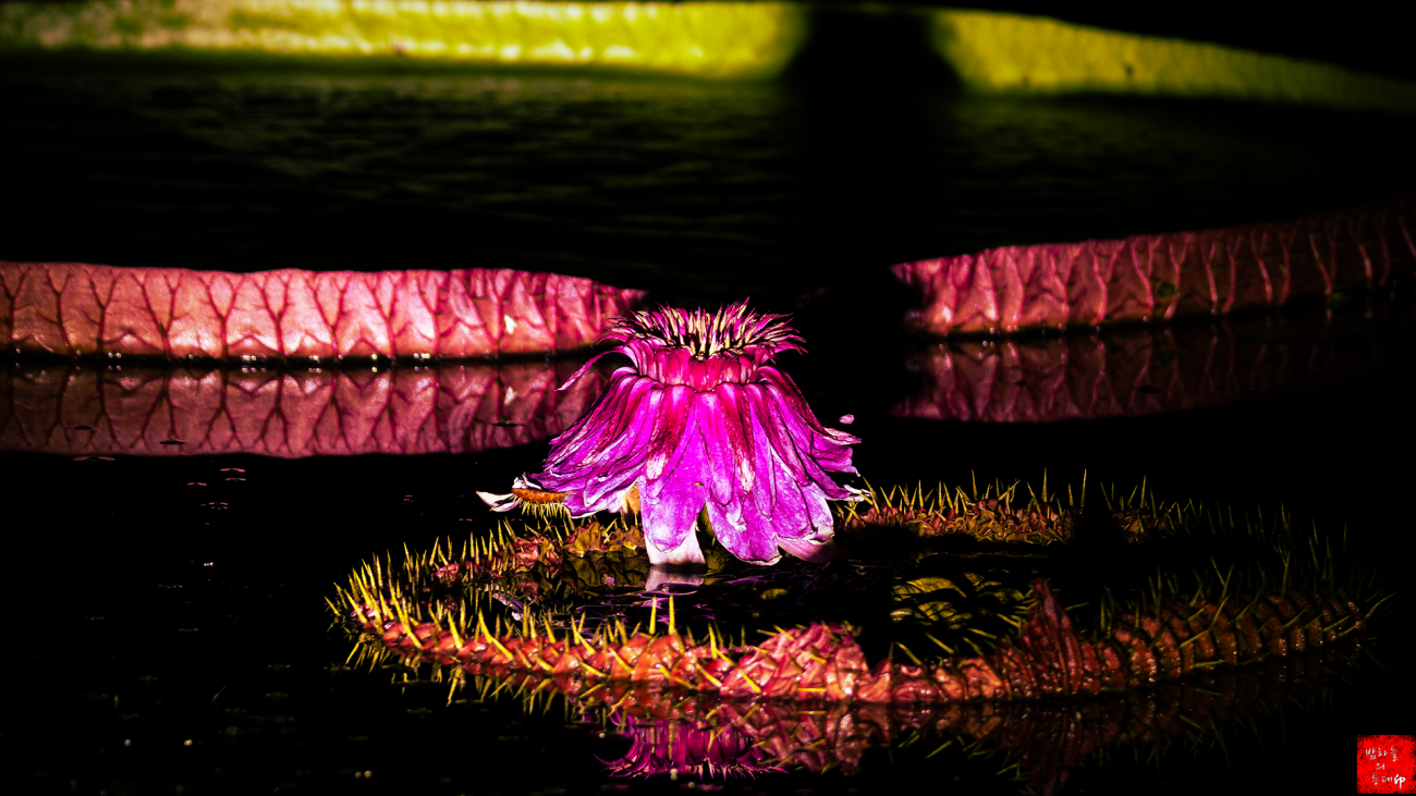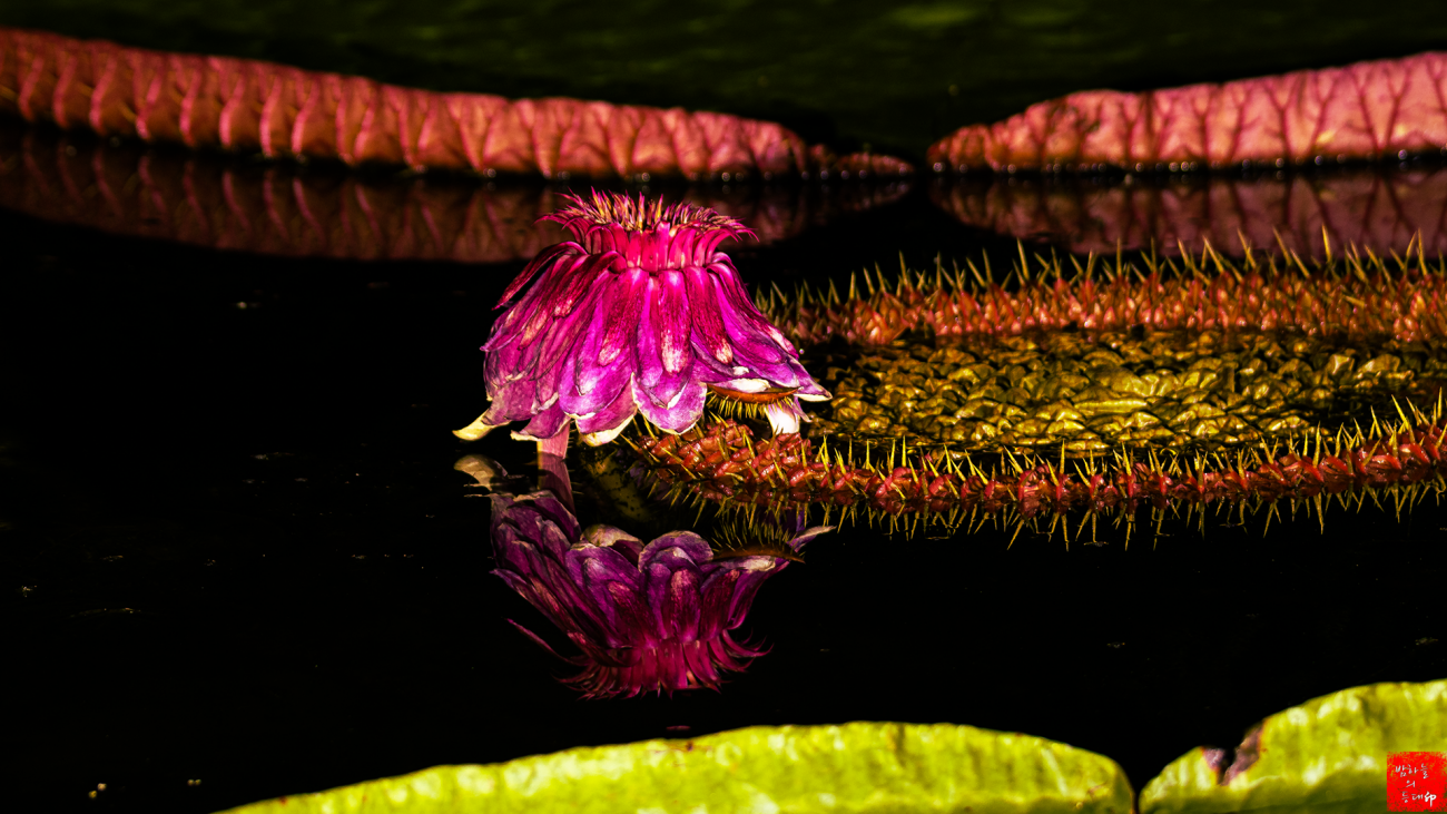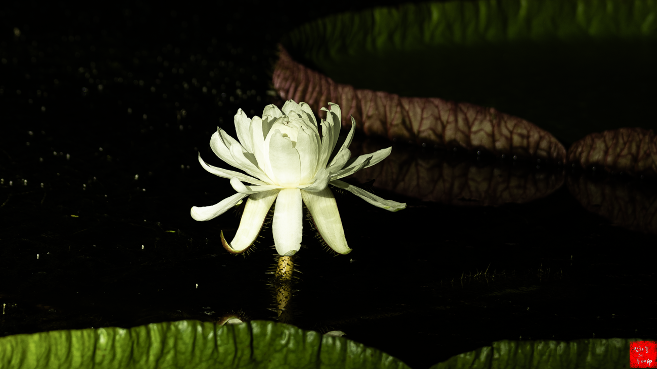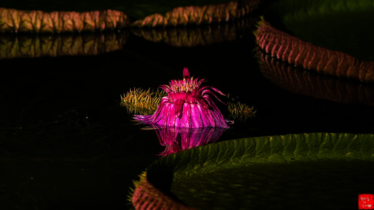 빅토리아 연꽃은 물의 수온이 내려갈 때 더욱 활짝 개화하는 모습이라