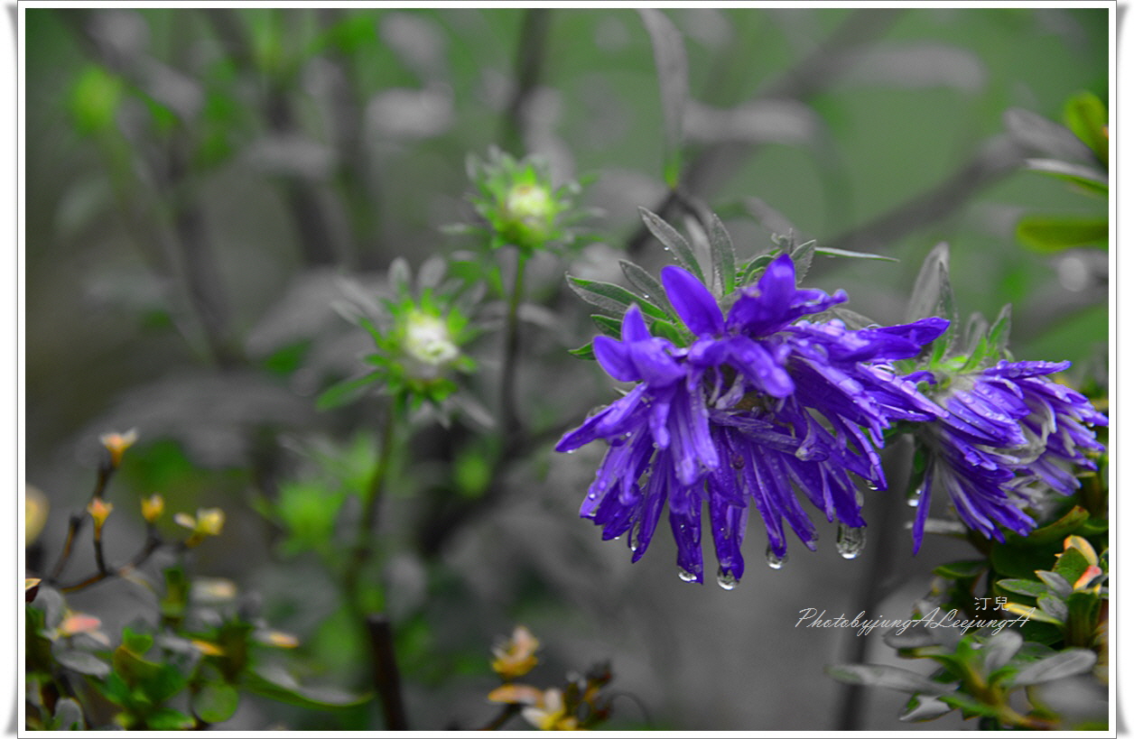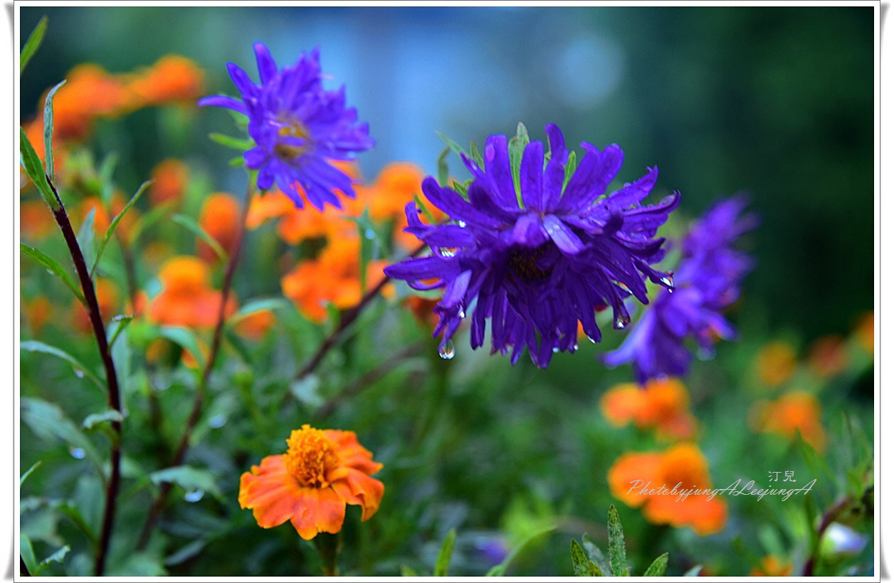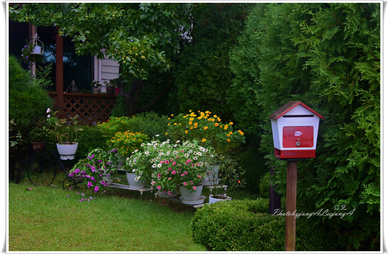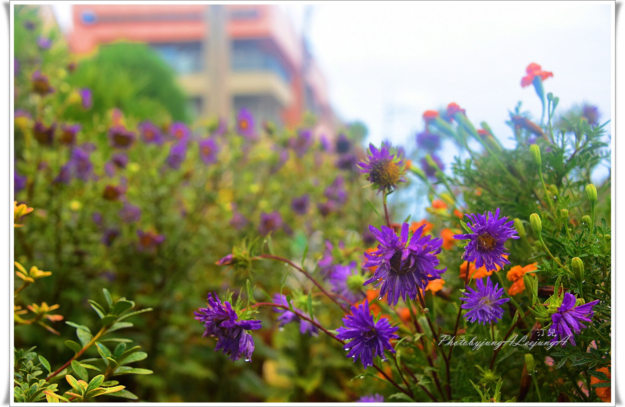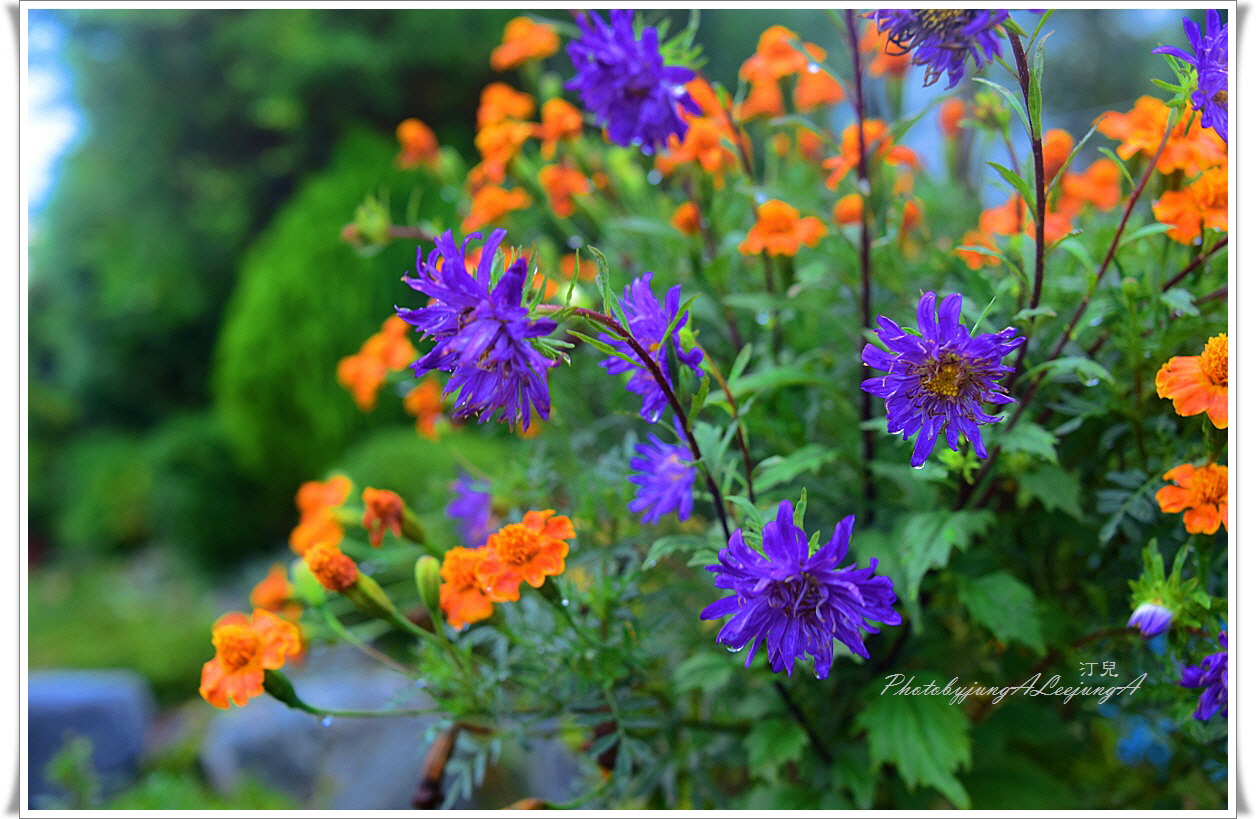 빗물에 젖은 꽃들이  수채화처럼 선연한 색상입니다