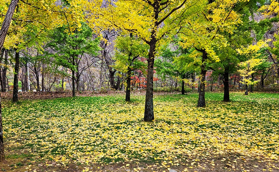 은행나무의 만추의 모습과 시기를 맞추기가 어려운 것 같습니다.