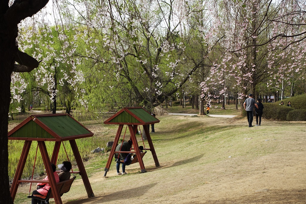 일산 호수풍경 개나리꽃과 벚꽃