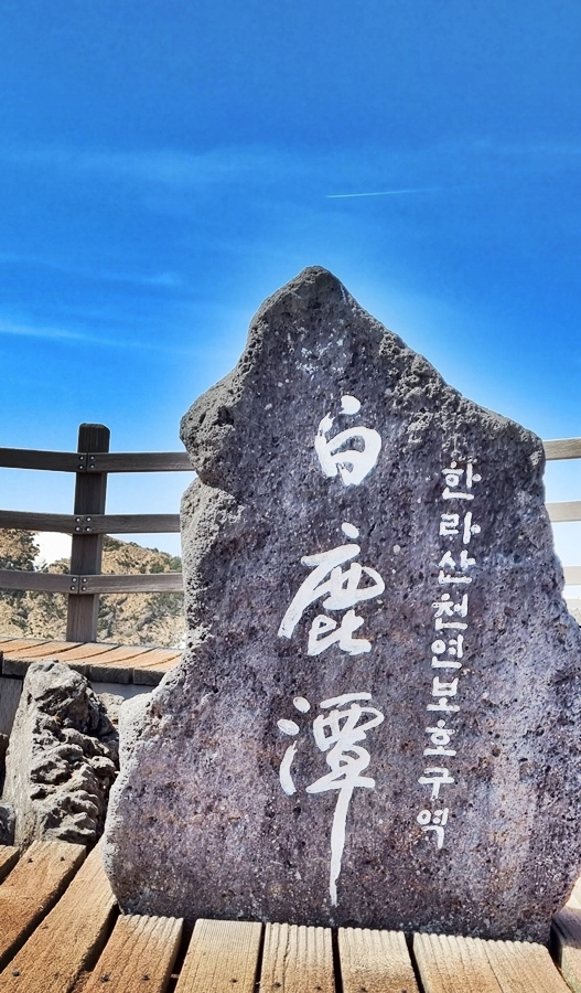 백록담은 수심이 5~10m, 둘레는 약 2km이다.