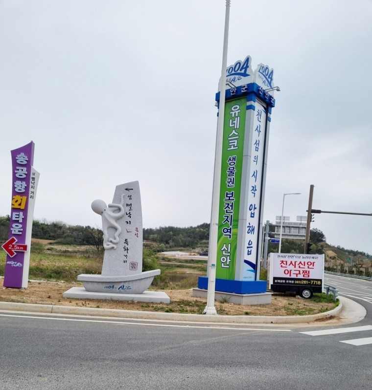 면 소재지인 증도와 9km, 목포시와는 20km 떨어졌으며