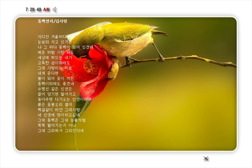 또한번 동백이 필때까지.....나를 잊지말아요 ^^언제들어도 감미롭습니다