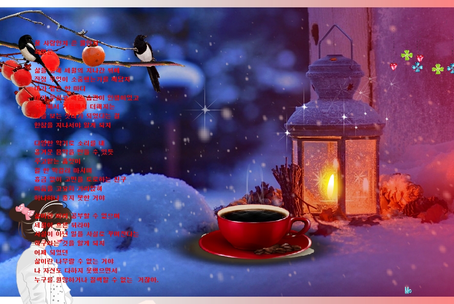 하루 하루가 참 빨리도 넘어가네요. 추위에도 시와 그리움이있는마을에서 항상 따뜻함을 느끼게되어 넘 감사하는 마음밉니다.고마워요^*^