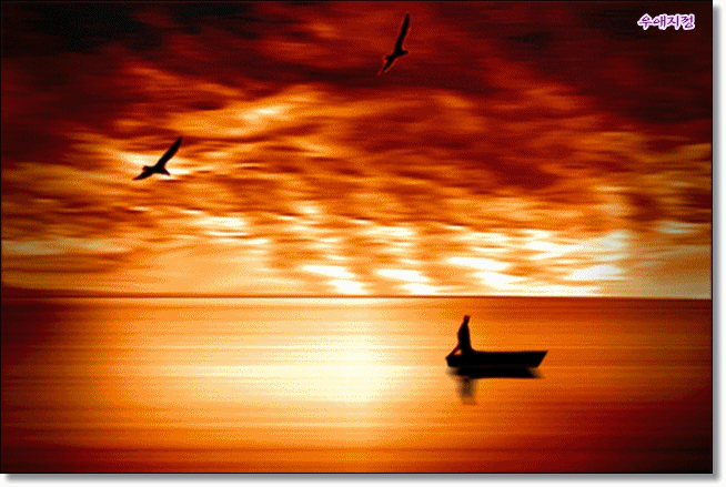 노을빛 아름다운 바다에 쪽배 한척 외로워라