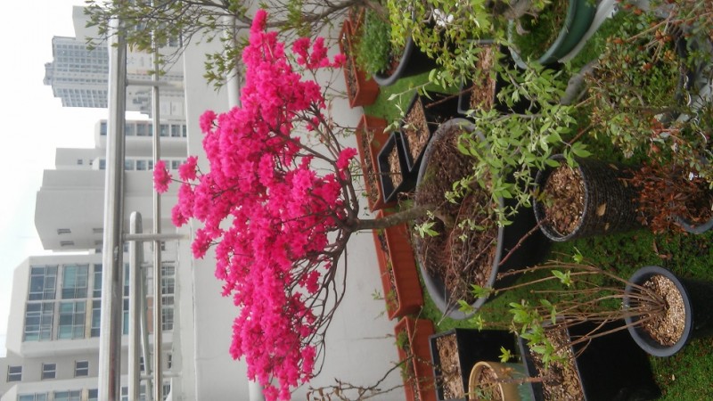 어제 비가 내리고 바람이 불더니만 테라스 왼편 인조잔디밭에 철쭉이 만개하였습니다.