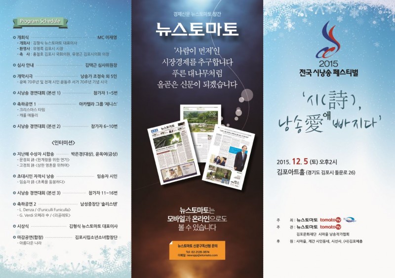 시마을 낭송작가협회 및 종합 뉴스채널인 뉴스토마토가 주관하는