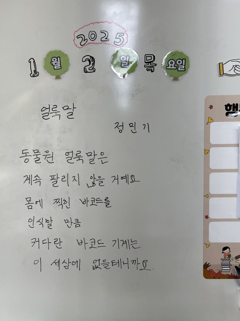 대전 어느 초등학교에 게시된 저의 동시 한 편!