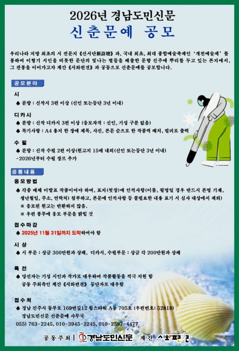 2026년 경남도민신문 신춘문예 공모(11/31)
