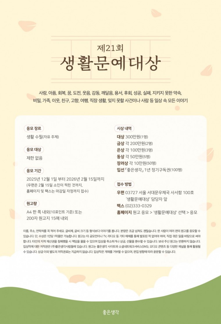 제21회 생활문예대상 공모 (2025. 12. 1. ~ 2026. 2. 15.)