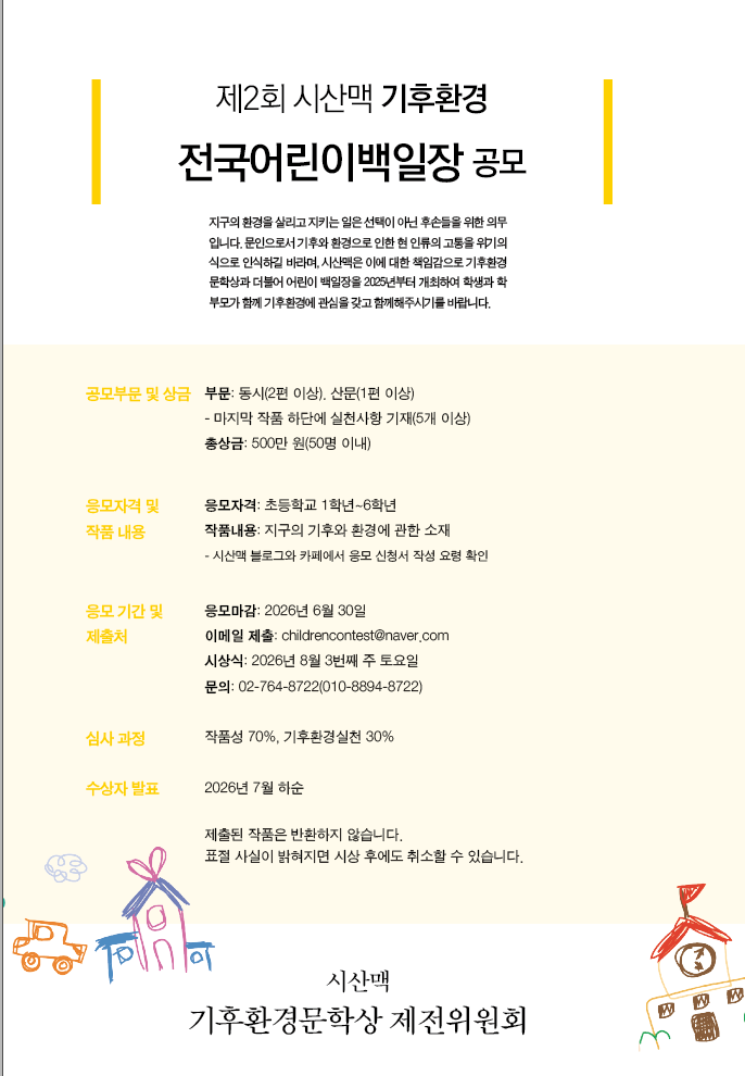 제2회 시산맥 기후환경 전국어린이백일장 공모 (6/30)