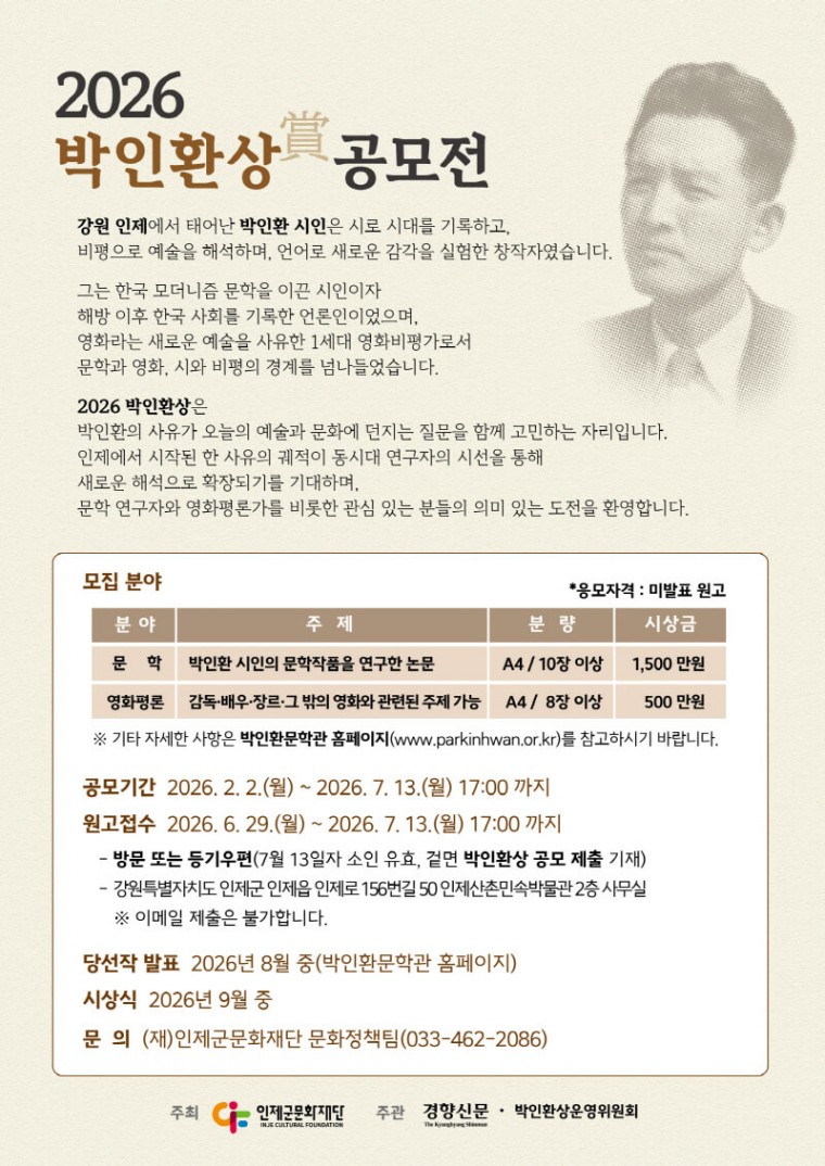 2026 박인환상 공모전 (7/13)