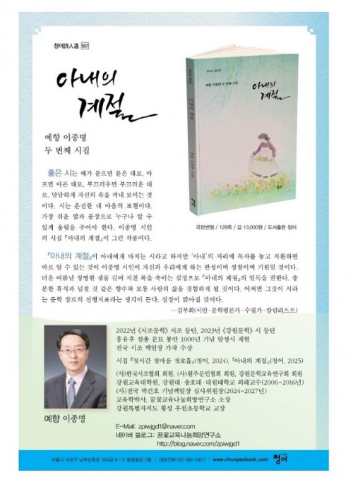 꿈꽃 시인 예향 이종명 두 번째 시집『아내의 계절』