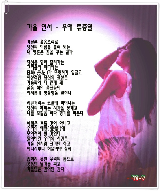 고운 영상과 유충렬 시인님의 가을 연서가 피아노 선율과 함께 오늘 하루도