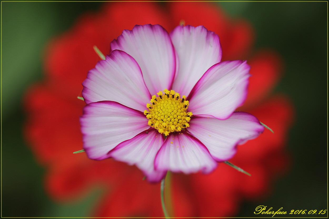 코스모스 한 송이를 접사놀이 하셨군요^^