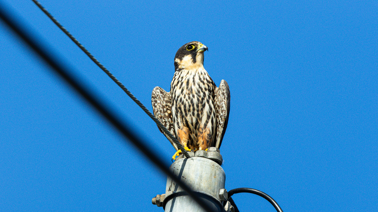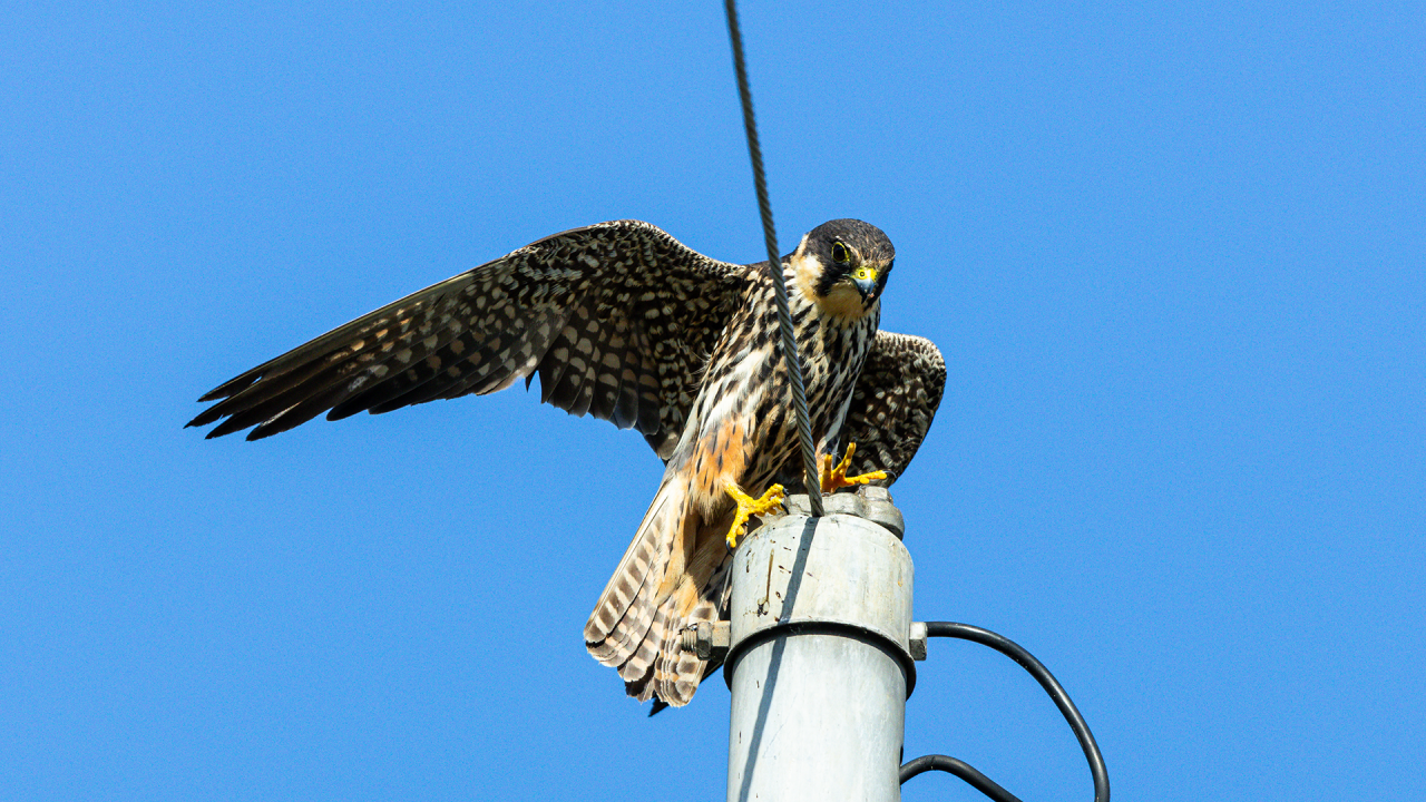 새호리기의 튼튼한 주택이 전봇대에 안전합니다