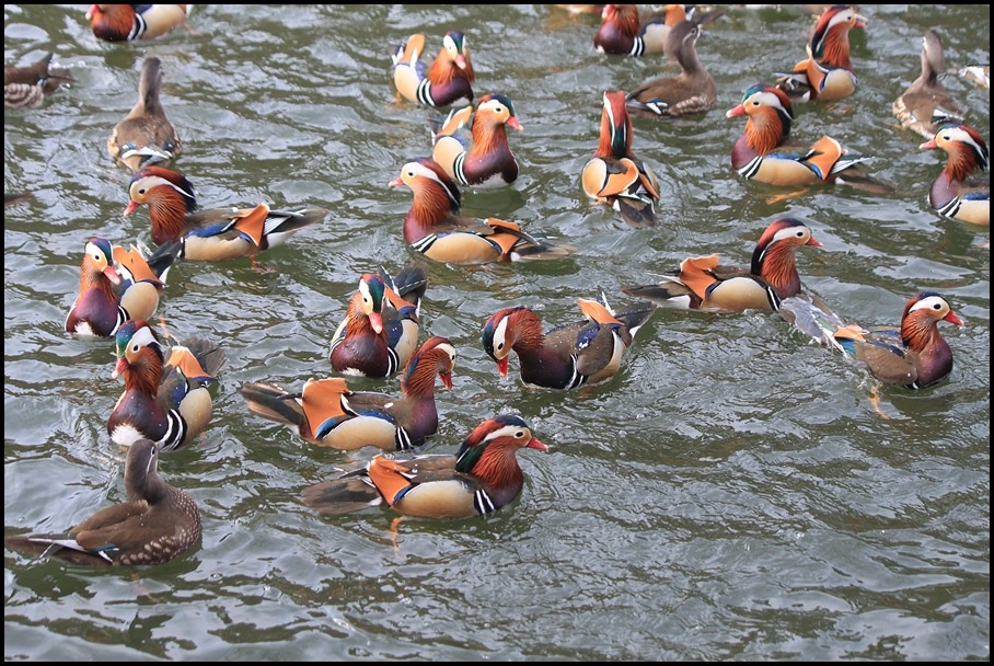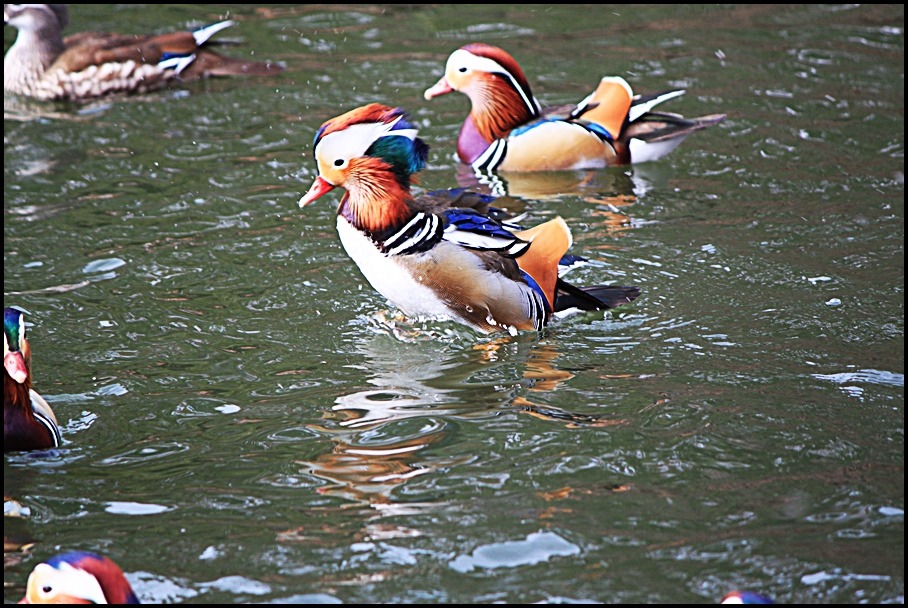 원앙의 무리들과 정겹게 노니는 암 수의 한 쌍 도 예쁘구요