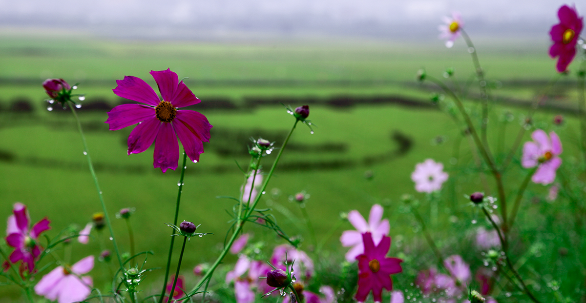 코스모스에 수정목걸이를 걸은듯이