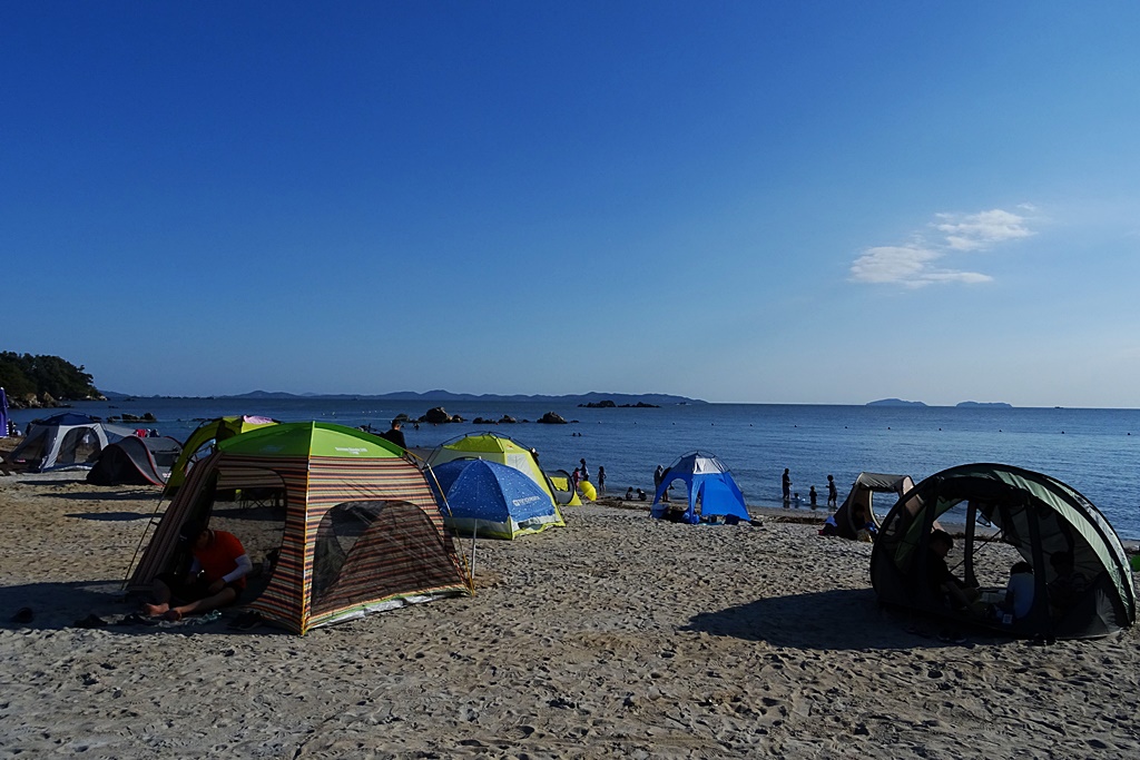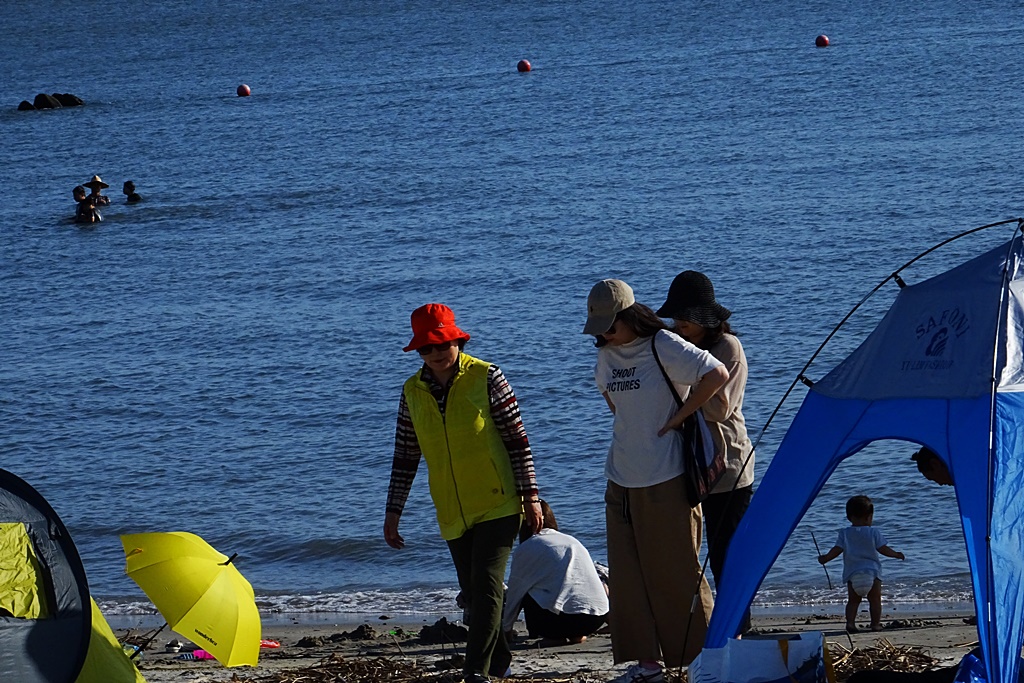 조그만 해수욕장에들려 모래밭도 밞아보고