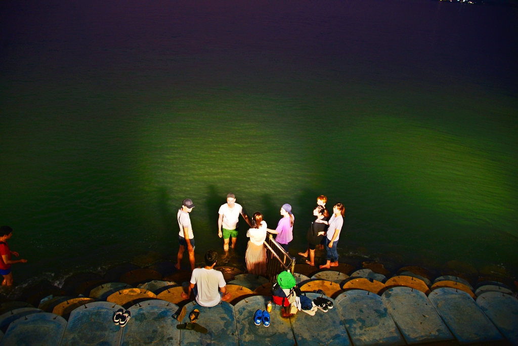 어제저녁 12시에 바닷가에 나가보니 약간 서늘하여