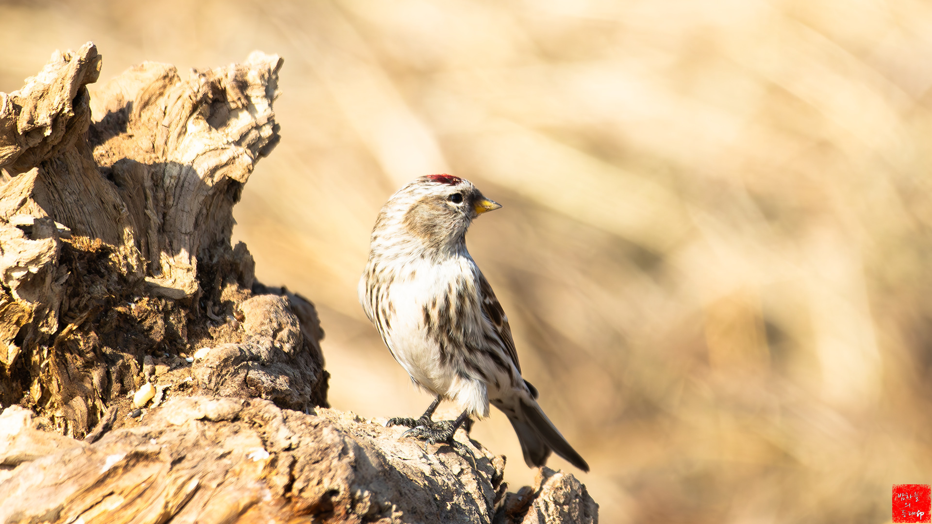 이름이 홍방울새이니 정수리에 붉은 점이 있는 방울새이겠지요.