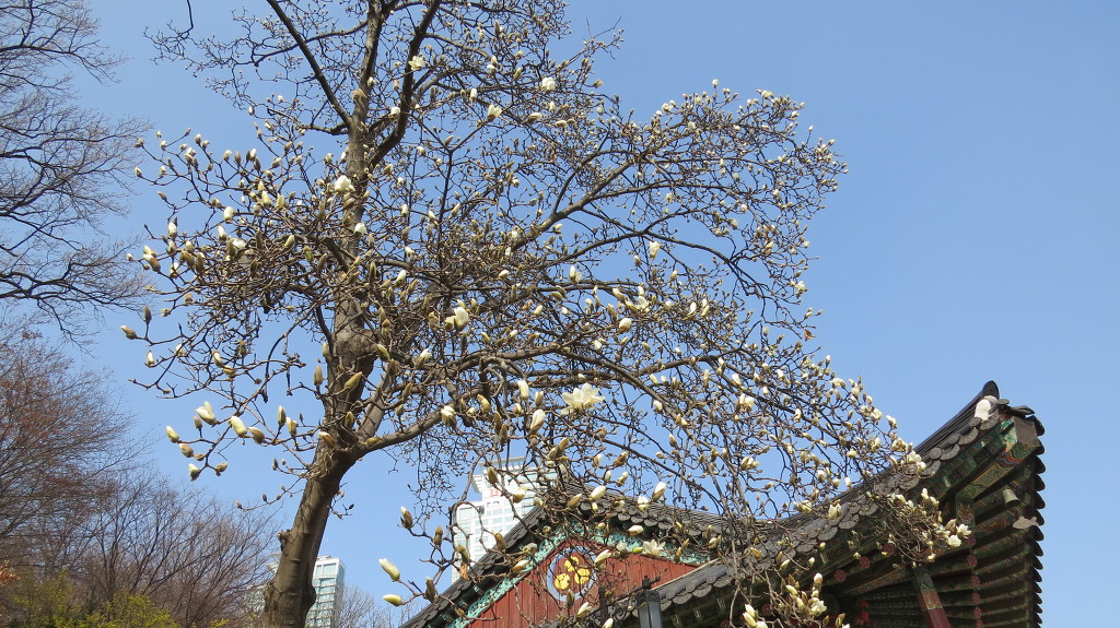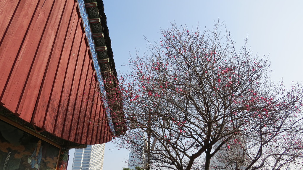 대웅전과 요사채 유달리 먼저 꽃을 피우는 봉은사