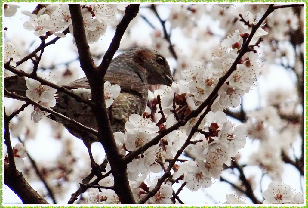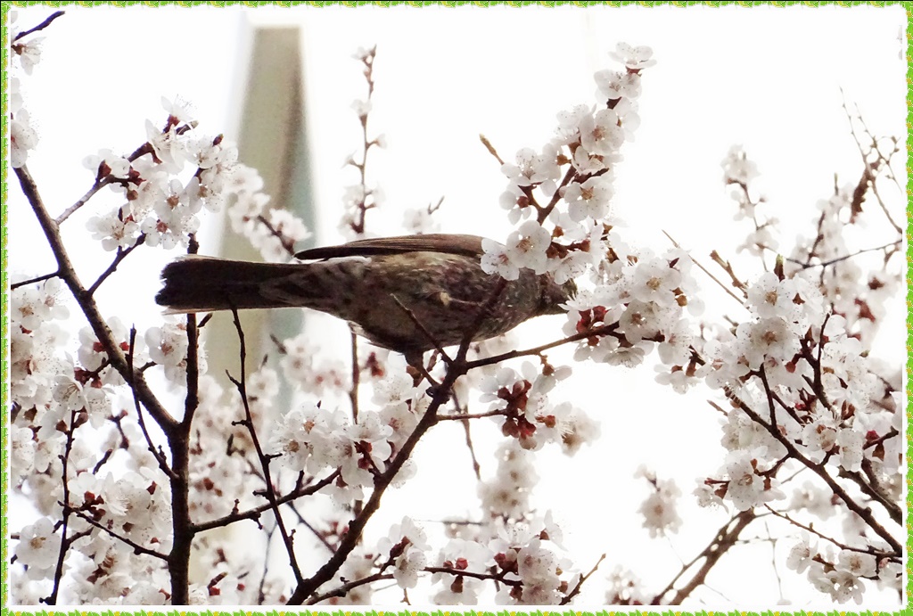 살구꽃에 직박구리 흠뻑 꽃에 취해서 인사불성이 되려나 봅니다