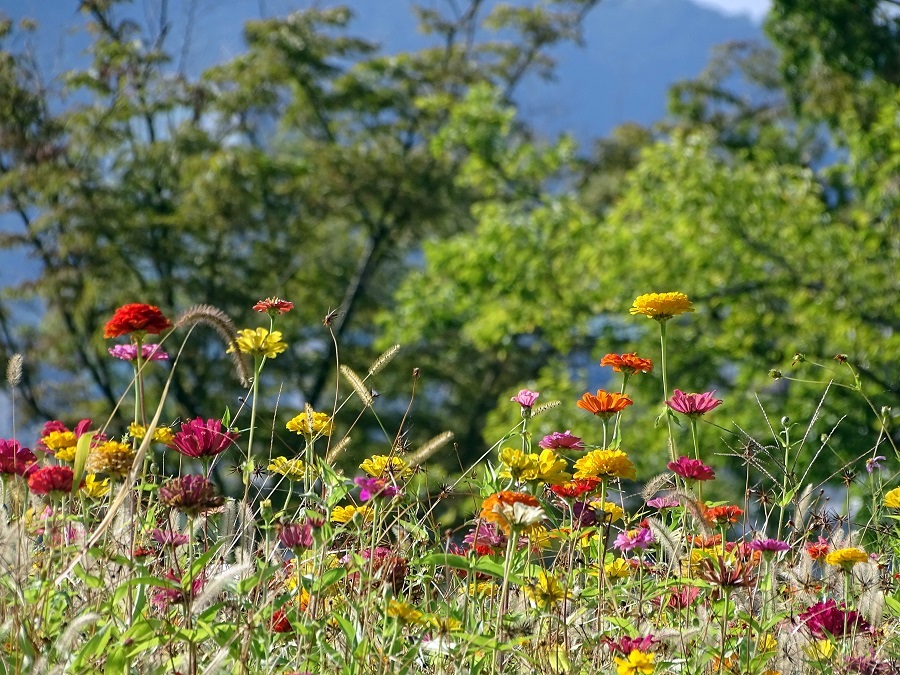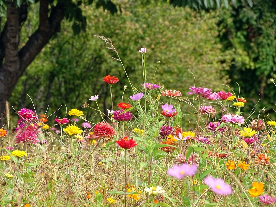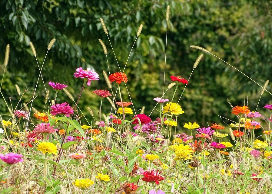 화려하게 다채로운 꽃 색 들이 두드러지지 않는 색을 지닌 잡초들과 아주 잘 어울립니다.
