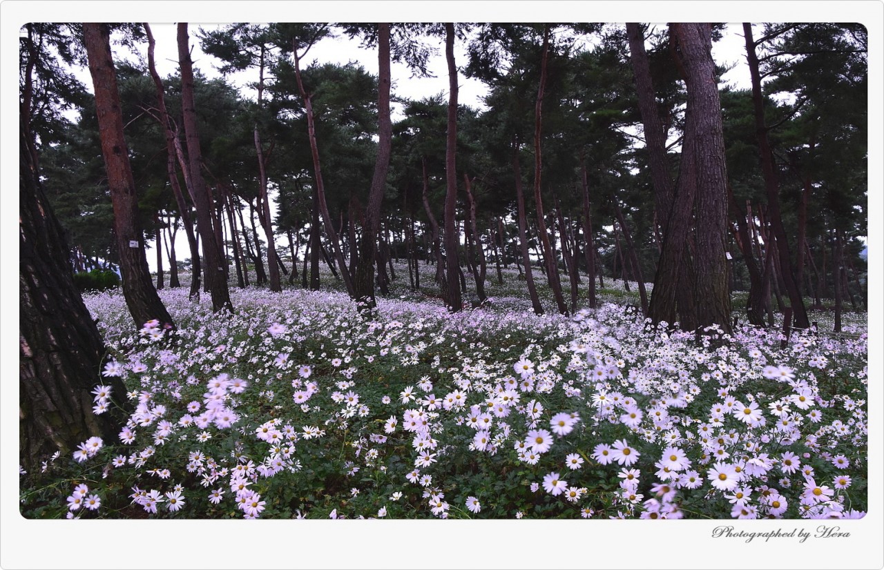 은은한 색과 향의 구절초 소나무 숲이 어우러지며