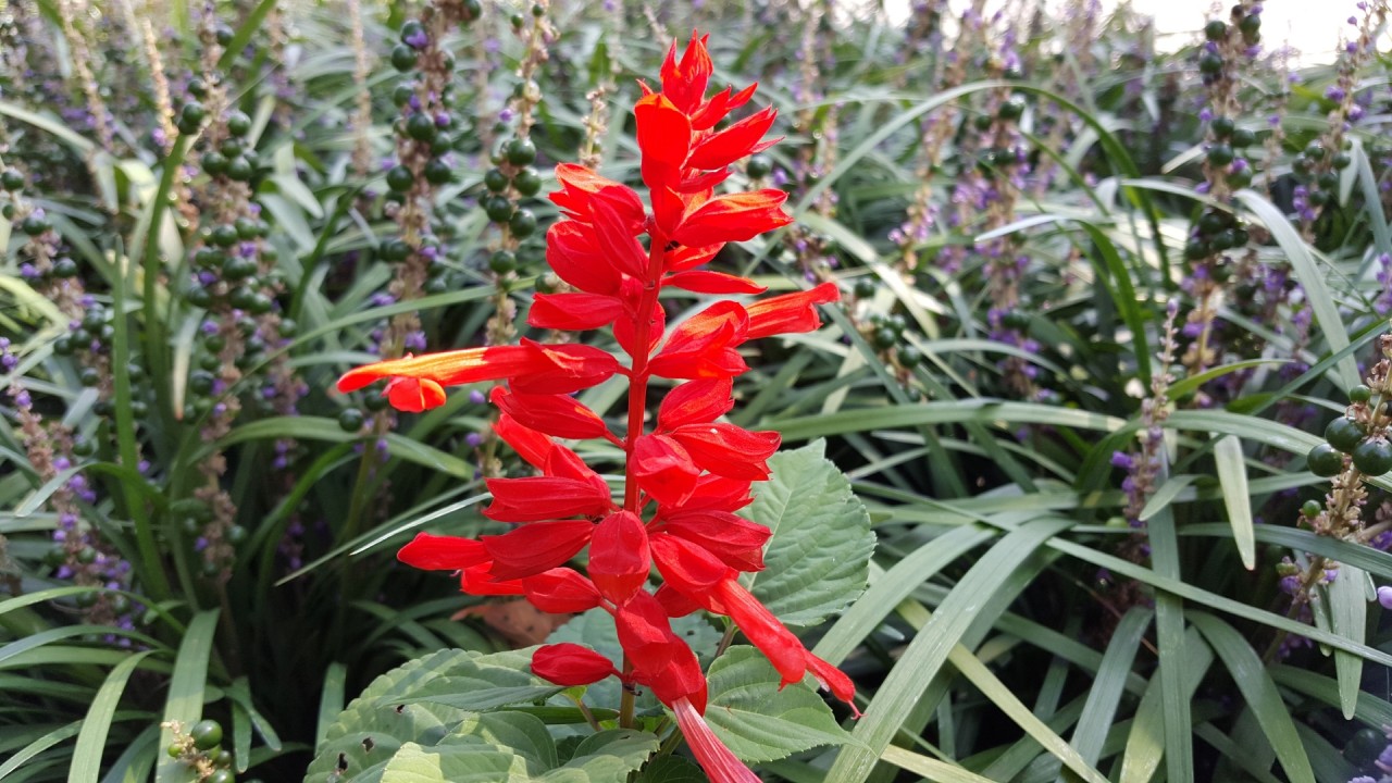 2.스러져가는 맥문동사이에서 샐비어 하나가 피어올랐다.
