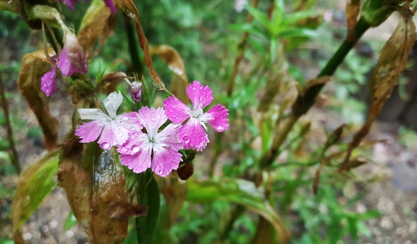 확실한 뒤에 인사를 나누기로 하고요..빗방울을 머금은 패랭이꽃
