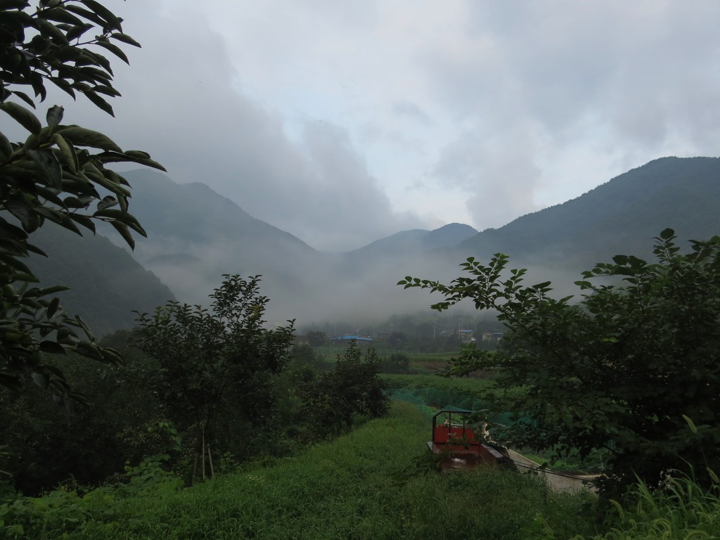 안개 피어있는 산길을 걸으셨군요.