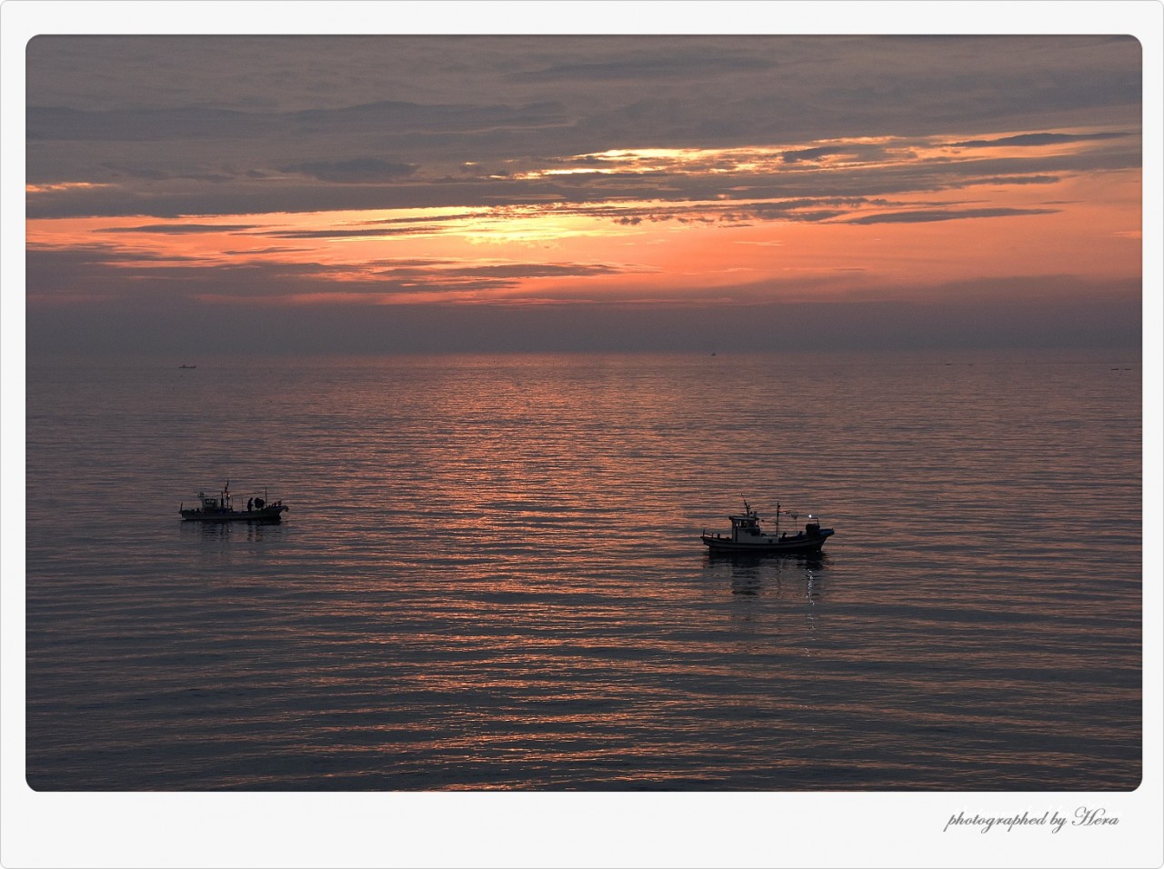이른 새벽 바다와 해오름이 시작되는 아름다운 경관