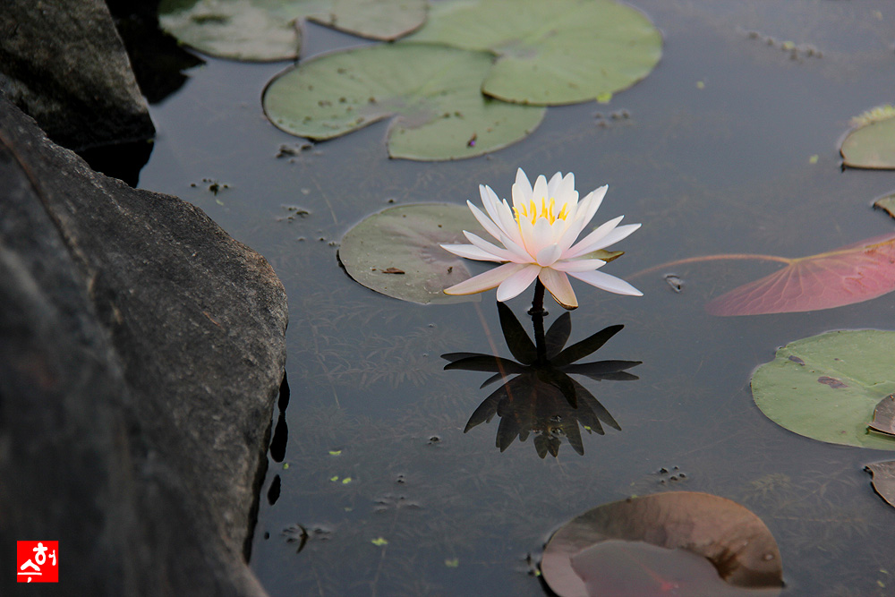 다소곳,우아한 수련의 자태를 반영의 모습과 함께 잘 담아내셨습니다.