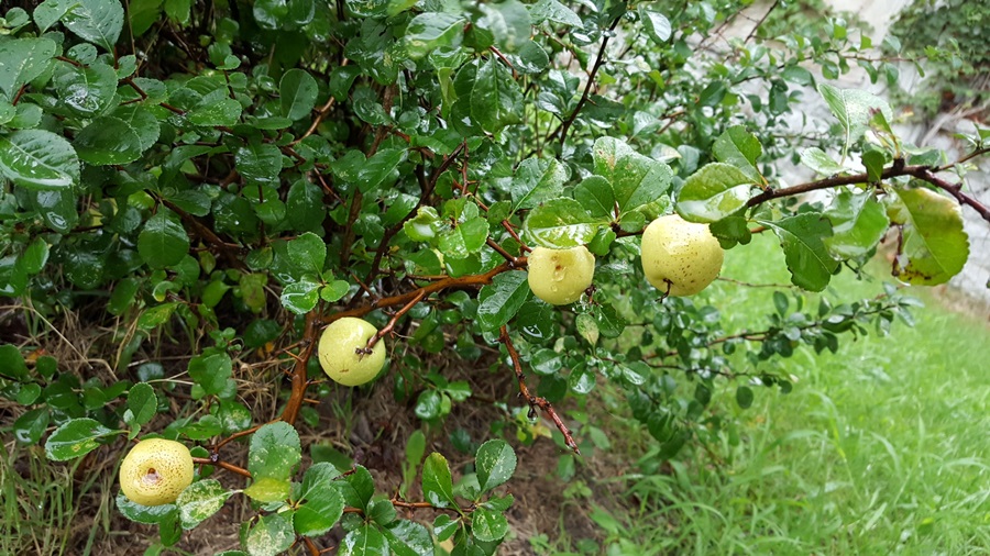 화려한 꽃을 피웠던 명자나무 열매는 애기배같은 느낌이 들고,