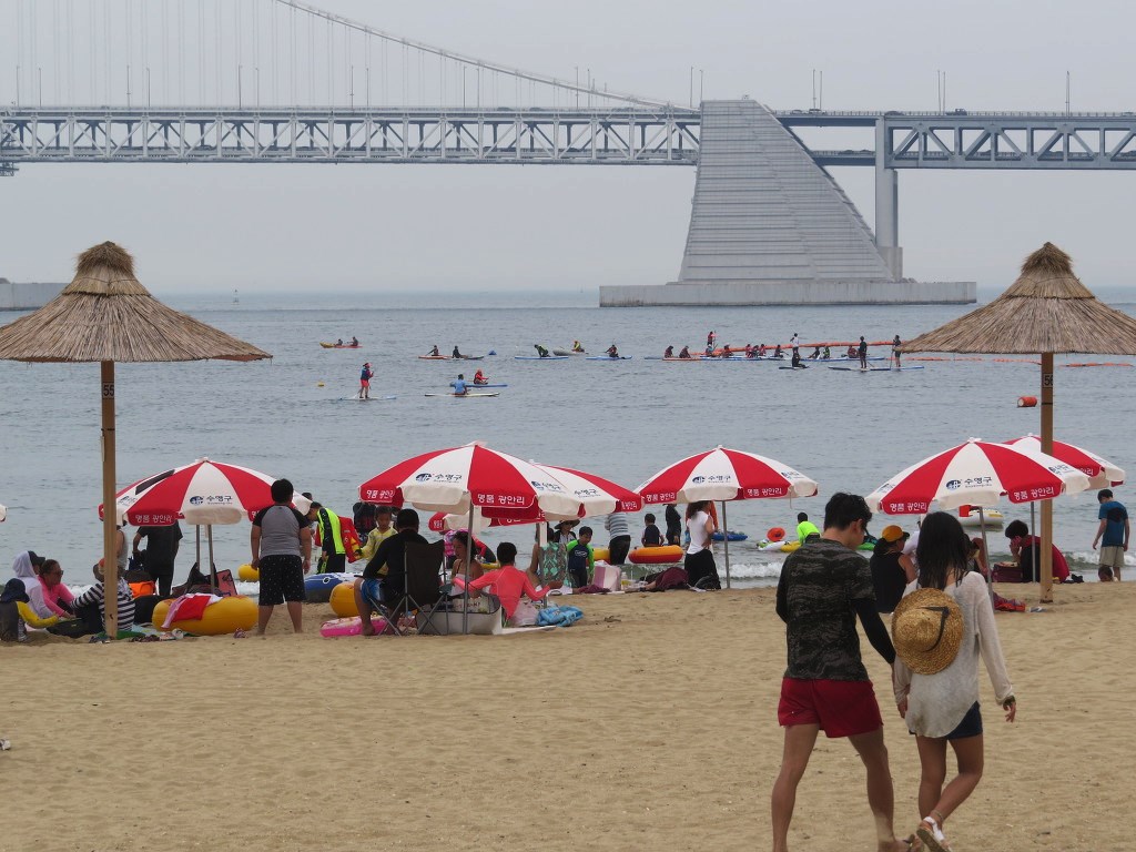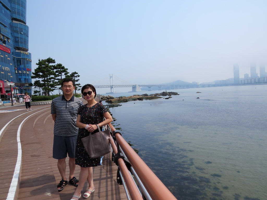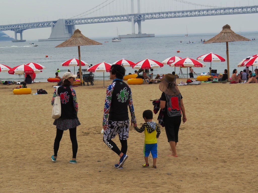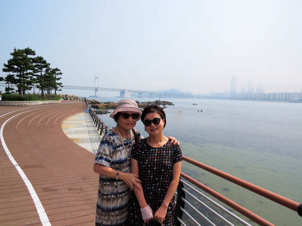 따님 내외가 광안리 바닷가로...어머니께로 휴가를 오셨군요.
