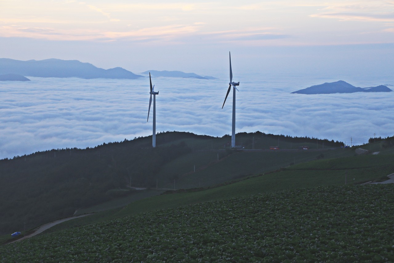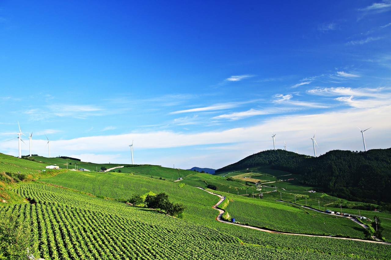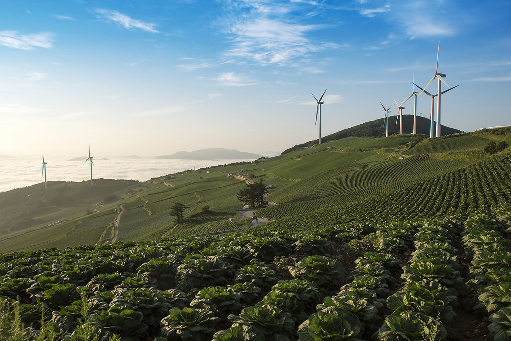 "高冷地`배추밭"과 "風力發電機"가,한幅의`그림..