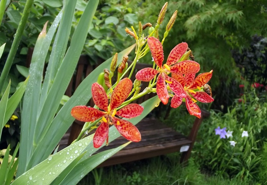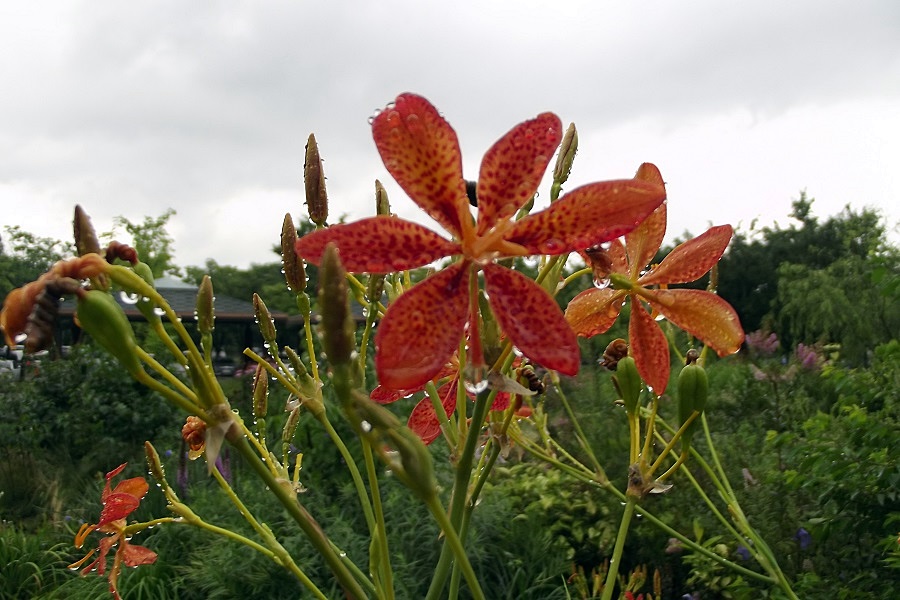 빗방울을 보듬은 범부채 그 자태가 예사롭지가 않습니다..