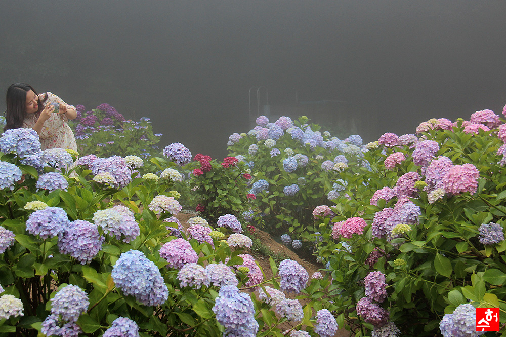장난삼아 샷을 했는데 생각보다 안개와 수국 그리고 여인의 모습이 괜찮아 보여