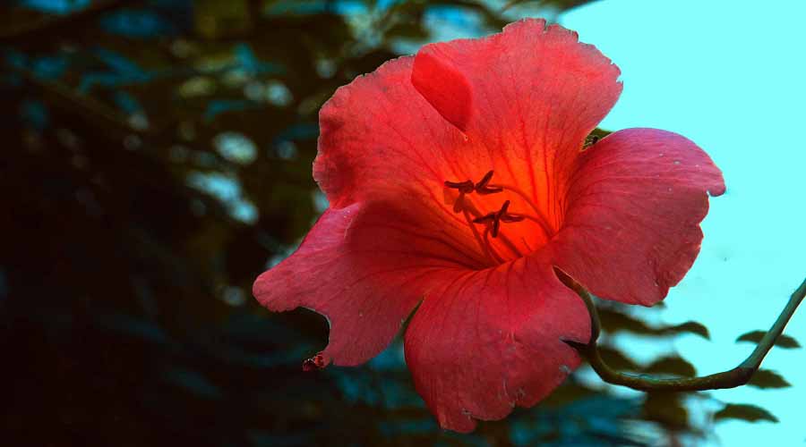 하지만 세미원 구석에 핀 능소화꽃 은 아주 강열한 빨강색도 있어요