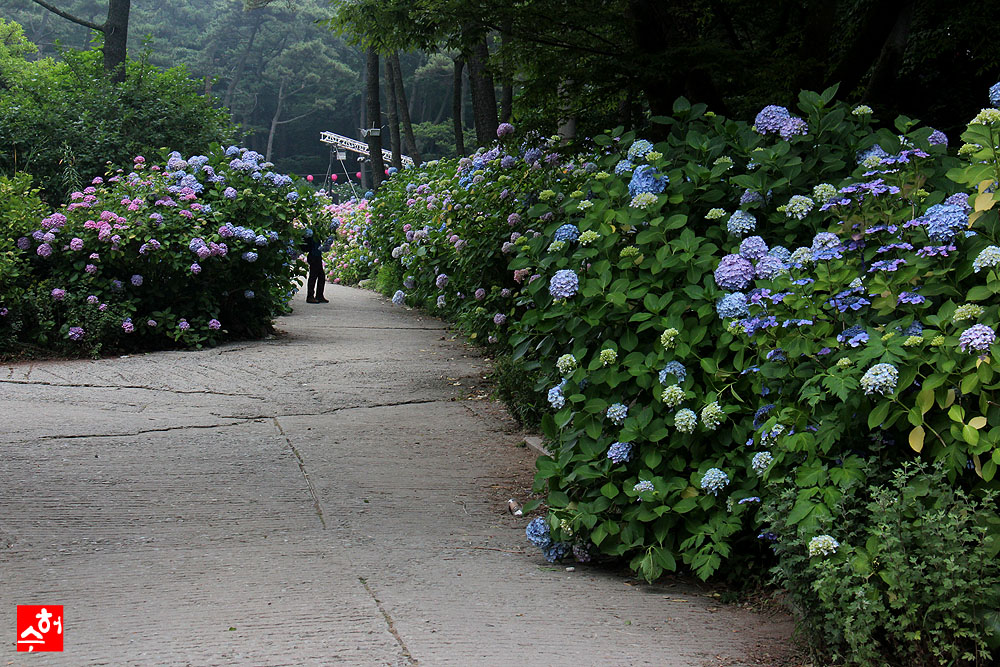 저도 이렇게 많은 수국꽃이 피여있는 태종사 절 내 꽃 처음보았담니다요