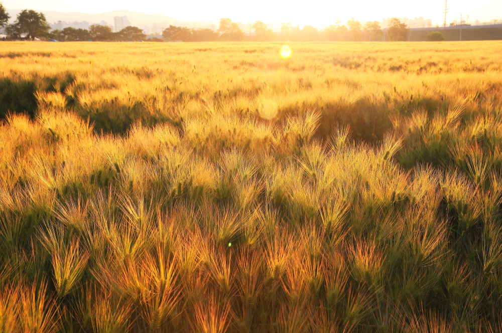 햇빛을 받은 보리가 멋지네요