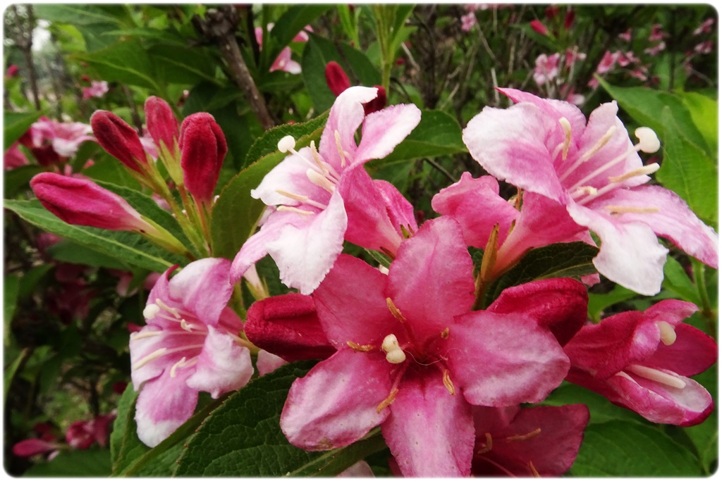 병꽃은 처음엔 흰색,연노랑으로 피었다가 붉은색으로 변해가는 병꽃나무가 있고,