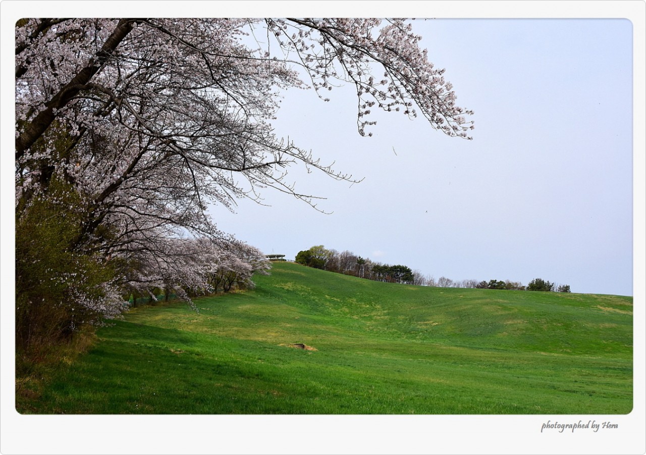 푸른 초원과 흐드러지게 핀 벗꽃이 아름다웠습니다.
