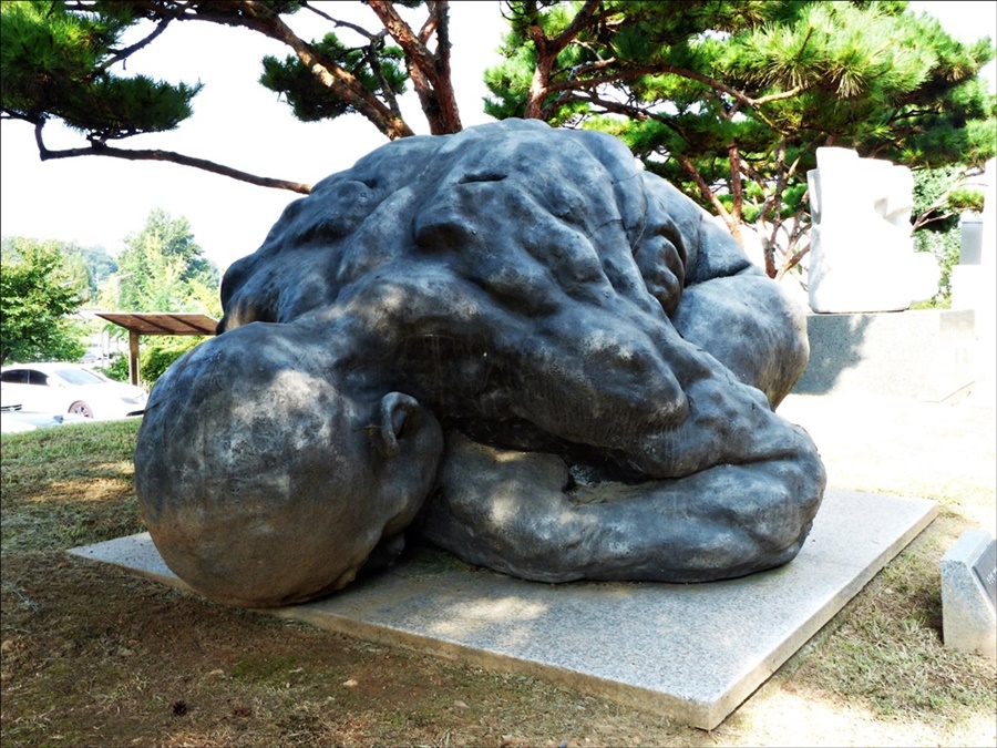 조형물이 여러 점 있는데요, 엎드려 있는 조각상 이름이 인생 - 空 -잠시 왔다가 사라짐.오르
